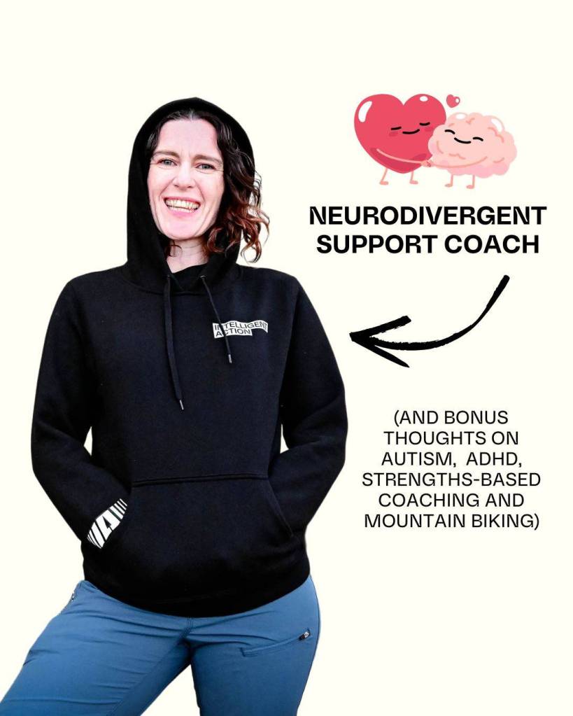 For people who prefer a structured, supportive chat than the self-paced course, I shared a post on social media recently about finishing a certified neurodivergent support coach course, and some bonus thoughts on autism, ADHD, strengths-based coaching, and mountain biking. The response has been really heartening and I’m excited to do more work in this area. For more information on online coaching, I’ve built a webpage for that too.